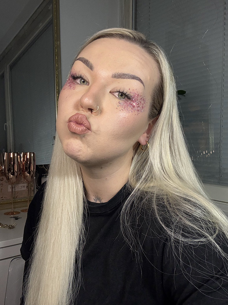 - Glitterliima on paras kaverisi silloin kun tarvitsen glittermeikillesi todella kestävän kiinnityksen ja silloin kun kiinnität iholle kasvotimantteja.