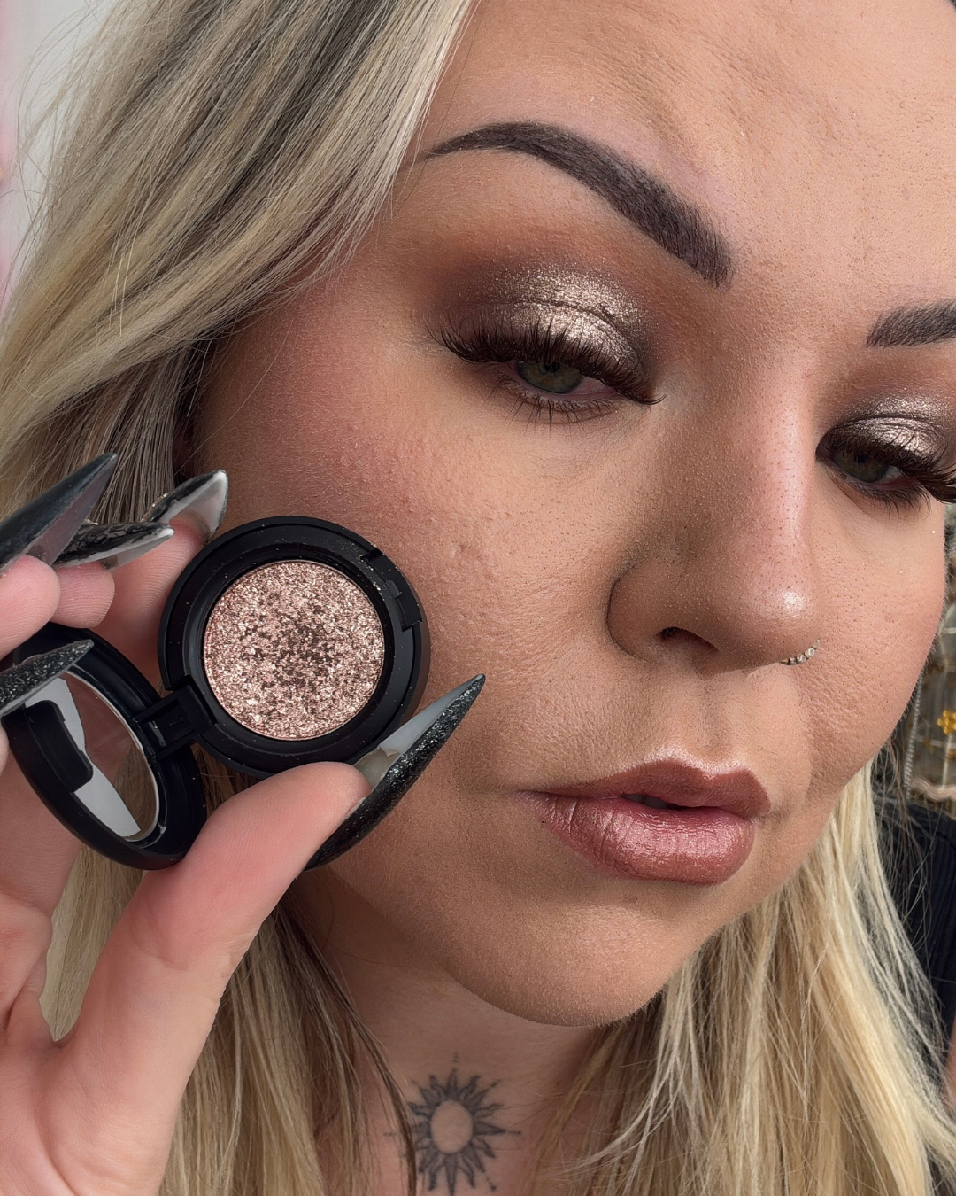 Copper Chaos is pure heat. This metallic copper eyeshadow glows like liquid fire, bringing warmth, depth, and fearless energy to your eyes. The shade is rich, fiery, and impossible to ignore – the ultimate blend of elegance and rebellion. See the full Glam Riot makeup collection here!