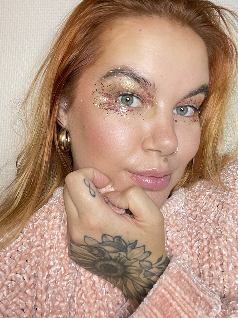 To apply, simply dampen skin with a product like Vaseline or Miracle Balm. Any water-free cream works perfectly well! Apply glitter generously with your fingers or with a makeup brush. It is good to remember that if you dip your makeup brush into glitter, it will always have a bit of glitter on it. So maybe save your most expensive brushes for something else! Check out our Magic Brush which is super for applying glitter!