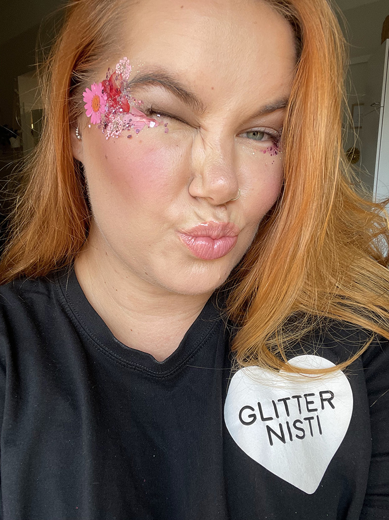 Glitternisti introduces Face Flowers, a mesmerizing new addition for floral makeup. Crafted from real flowers, these unique face decorations bring nature’s beauty directly to your skin. Face Flowers are available pink, lilac, and white, offering a selection of pressed flower assortments similar to the picture shown. Note that individual package contents may vary. Apply the flowers with a waterfree cream, glitter primer or glitter glue, using tweezers for help. See all Face Flowers here.